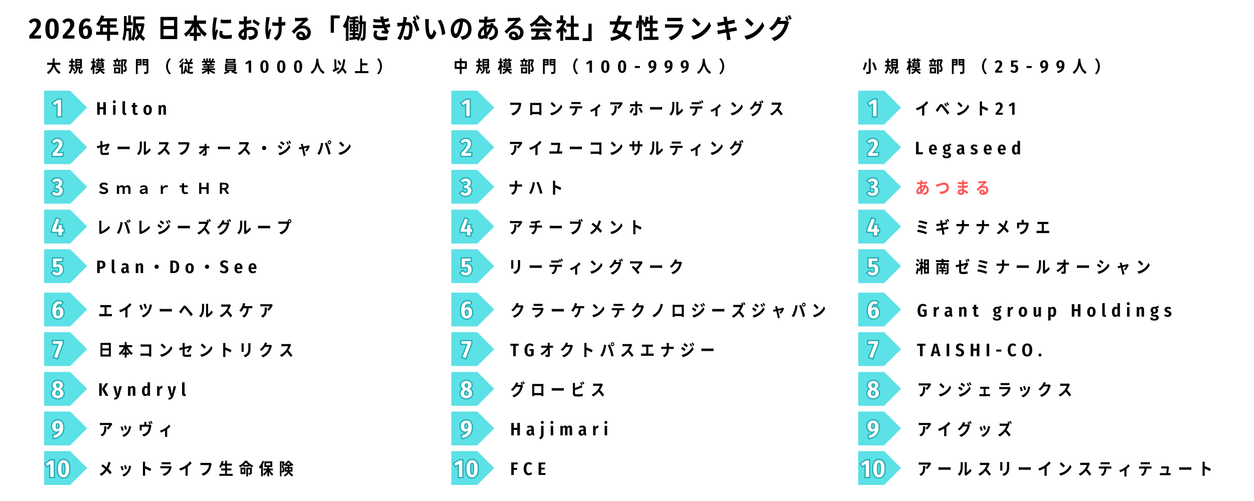株式会社あつまるは、Great Place To Work® Institute Japan(以下、GPTWJapan)が発表した2026年版 日本における「働きがいのある会社」女性ランキング(小規模部門)において、第3位に選出されました。