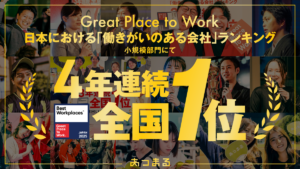 当社はGreat Place To Work® Institute Japanが発表する、2025年版「日本における働きがいのある会社」ランキング(従業員数25-99人/小規模部門)において、4年連続で全国1位に選出されています(2019年より7年連続ベストカンパニー)。